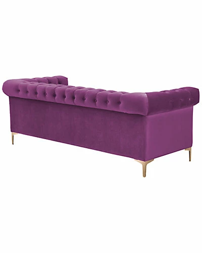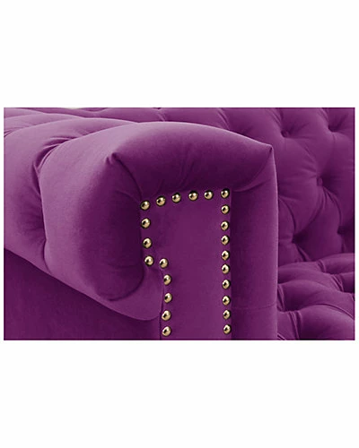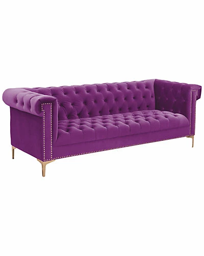 - Design details: Chic Home velvet sofa is a retro must have. Looks equally stunning in an office or a relaxed den. This sofa features rich hued button tufted Velvet with contrasting goldtone nailhead trim accenting stunning rolled arms, high density foam padding, and sturdy Y-shaped coordinating goldtone chrome metal legs. Chic and sophisticated, this sofa will always be in style.