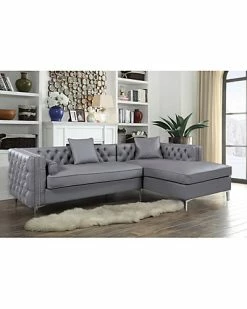 - Design details: plated chrome finish/detail; PU leather, walnut, foam, and plywood construction; tufted on both the inside and outside of the frame; single “bench” cushions; accented with double rows of nickel-finished nail heads