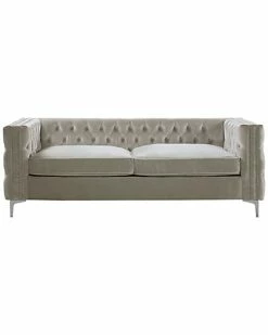 - Design details: A modern take on a traditional Chesterfield, this sofa is a statement – making piece of beautiful design. Rich velvet is tufted on both the inside and outside of the frame, a beautiful design detail that can be seen from any angle in a room. This sofa is accented with double rows of nickel-finished nailheads and pairs beautifully with the club chair. Suited for both traditional and contemporary design environments.