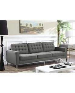 - Design details: Plated chrome finish/detail; linen, chrome, foam, and plywood construction; tufted all over the inside of the piece; three high density foam cushions