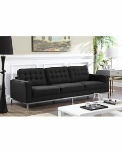 - Design details: Plated chrome finish/detail; linen, chrome, foam, and plywood construction; tufted all over the inside of the piece; three high density foam cushions