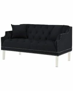 - A modern take on a traditional design, the Elsa love seat sofa is a statement-making piece of beautiful design. Rich velvet is tufted on the inside of the frame, a beautiful design detail that can be seen from any angle in a room. The love seat is accented with double rows of nickel-finished nailheads and sits atop stylish acrylic legs. Works great as a standalone piece and pairs beautifully with the Elsa sofa and/or club chair. Suited for both traditional and contemporary design environments.
