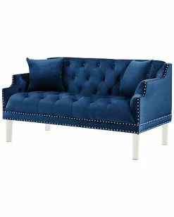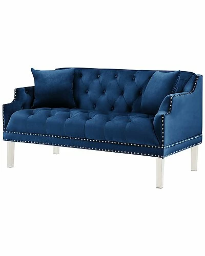 - A modern take on a traditional design, the Elsa love seat sofa is a statement-making piece of beautiful design. Rich velvet is tufted on the inside of the frame, a beautiful design detail that can be seen from any angle in a room. The love seat is accented with double rows of nickel-finished nailheads and sits atop stylish acrylic legs. Works great as a standalone piece and pairs beautifully with the Elsa sofa and/or club chair. Suited for both traditional and contemporary design environments.