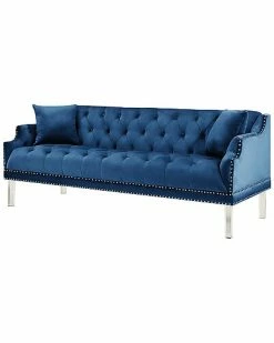 - A modern take on traditional design, the Elsa Sofa is a statement-making piece of beautiful design. Rich velvet is tufted on the inside of the frame, a beautiful design detail that can be seen from any angle in a room. The sofa is accented with double rows of nickel-finished nailheads and sits atop stylish acrylic legs. Works great as a standalone piece and pairs beautifully with the Elsa love seat and/or club chair. Suited for both traditional and contemporary design environments.