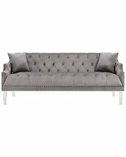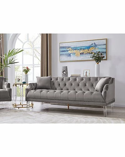 - A modern take on traditional design, the Elsa Sofa is a statement-making piece of beautiful design. Rich velvet is tufted on the inside of the frame, a beautiful design detail that can be seen from any angle in a room. The sofa is accented with double rows of nickel-finished nailheads and sits atop stylish acrylic legs. Works great as a standalone piece and pairs beautifully with the Elsa love seat and/or club chair. Suited for both traditional and contemporary design environments.