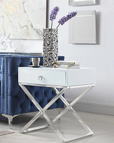 - Design details: MDF and stainless steel construction; high gloss lacquer, single drawer with self-closing mechanism