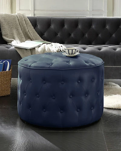- Design details: This round pouf Ottoman doubles as extra seating and functional decor for virtually any environment. Softened contemporary design features luxe pebble grain PU leather upholstery and chic, all around button tufting. In an instant, it adds a touch of timeless elegance to your room.