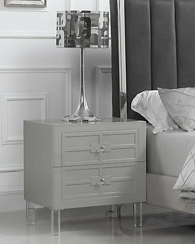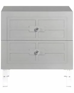 - Design details: MDF, Lucite acrylic glass, and PU base coat construction; carved drawers, faceted acrylic drawer pulls and legs; finished with a self-closing drawer mechanism