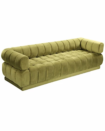 - Design details: The Quebec sofa is an elegant statement-making piece with clean lines softened by subtle curves. Vertical, channel quilting and tufting inside and out is an outstanding design detail on this beautiful, velvet upholstered chair with shelter arms and plush seating. Works great as a standalone piece or pairs beautifully with the Quebec club chair. Lends itself to living room, lounge, den and office spaces with modern and contemporary design styles.