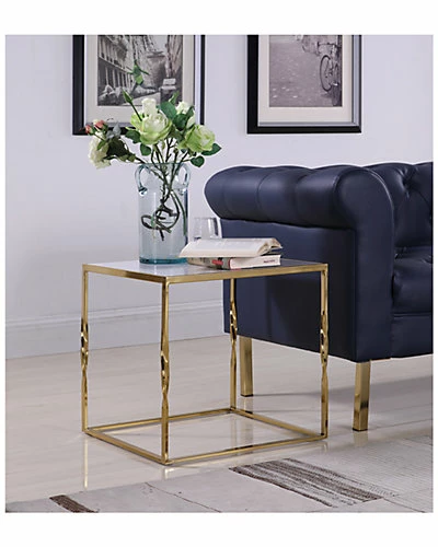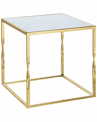 - Design details: Sleek and modern, the Rialto side table is a statement-making piece of beautiful design. Painstakingly crafted in a multi-step process to achieve a unique look, this accent piece embodies sophisticated, contemporary style. The table features a marble look finish table top and a gold tone solid metal cube frame. A great surface for lamps, books and accents, the Rialto is well suited for a wide range of interior settings. The Rialto side table is perfect for both living and bedroom areas in modern and contemporary design environments.