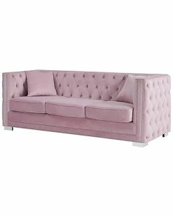 1 Sofa in Velvet Fabric: (L) 83 (W) 33 (H) 30 THE BEST SEAT IN THE HOUSE (or OFFICE) – Timeless elegance abounds on the Christophe sofa – From generous outside and inside button tufting to elegantly detailed double row nail heads and polished silver tone metal block legs, no detail is overlooked on this design show stopper – Sits boldly on its own and pairs beautifully with the Christophe love seat and/or club chair – This beautiful statement-making piece is well suited for your living room, den, lounge, bedroom or office LUXURIOUS VELVET UPHOLSTERY – Expertly upholstered in premium quality velvet fabric – The plush texture of this velvet creates a rich and luxurious feel STYLISH MODERN TRANSITIONAL LOOK – Sitting between contemporary and traditional, modern transitional design provides immense aesthetic versatility to be used within virtually any décor PLUSH MULTI DENSITY CUSHIONING – Plush multi density foam fill allows for a soft yet supportive seat – You and your guests will relax in comfort and style ENGINEERED TO PERFECTION – All Chic Home Furniture products are made with durable top of the line materials under strict quality control standards that create a lasting piece for your home Finish: finish: metal leg Material: velvet, foam, metal, plywood Finish: metal leg Spot Clean Only Imported This item will be delivered via freight delivery to a residential address. (Deliverable addresses include homes, home-based businesses, college dormitories, apartments, and townhouses. Deliveries will be made to the building’s ground floor entrance or garage entrance only. Within two weeks of receiving your shipping confirmation email, you will receive a phone call from the delivery service to set up an appointment for delivery (please confirm the phone number listed with your billing address before you place your order). Please note: Appointments are contingent with the business hours and availability of the delivery service. You must be present to sign for the item at the arranged time.* A confirmation number and further details about the delivery service will be sent once your order has been shipped.
