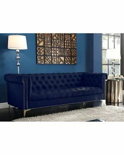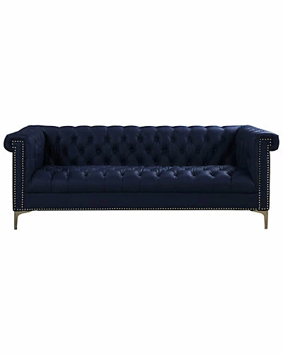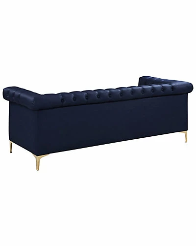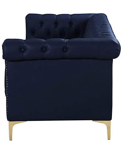 - Design details: plated gold finish/detail; PU leather, chrome, foam, and plywood construction; tufted all over the inside of the piece; single “bench” cushion; accented with double rows of gold tone finished nail heads and legs
