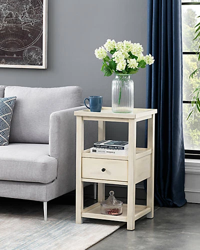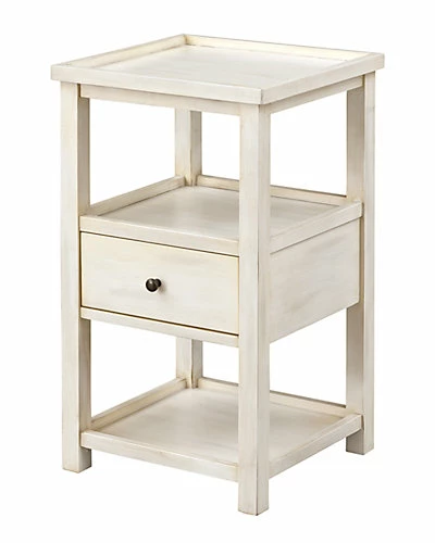 - Design details: To hold plants in your sunroom, some candles in your bath, or a lamp by your favorite reading chair, this Chairside Table is just the ticket! Two lower shelves plus the top have slightly raised framed edge to help keep items where you want them, and you also have a central drawer to hold your remotes, puzzle books and pens. Finished all the way around in our Cape Cod Cream, this Accent Table will fit perfectly in any locale!