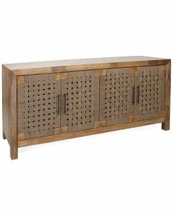 - Mango Wood. Jute Weave Door Fronts. Two Fixed Shelves. Cord Management. Adjustable Levelers. . A natural beauty, this four door credenza in the Augustine Brown & Jute finish is exactly that. Warm wood tones encase the four doors that are made from a natural woven jute for a tantalizing textural element. Inside is spacious, with shelves dividing the interior into four large compartment for your storage needs. The ideal addition for any and every decor.