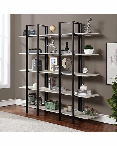 - Five long shelves finished in the pale Aspen Court White rise up and are supported by two dark metal “V” shaped frames, creating an awesome display space where you will be able to artfully arrange so many of your prized possessions! Open and airy, this stunning Etagere will look perfect in any room, and will give your that clean and clear view that you so love!