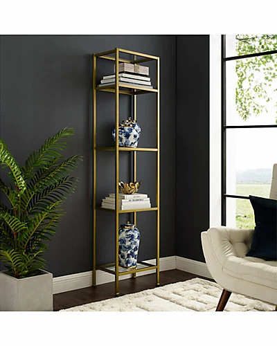 - Stylish and modern, the Aimee Narrow Etagere is an eye-catching addition to any home. With a sturdy yet sleek steel frame, the Aimee Etagere can be paired with a variety of decor. The open, tempered glass shelves of the etagere are perfect for display and organization without overwhelming the room.