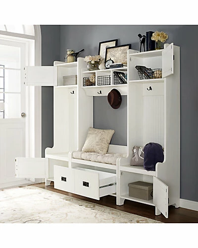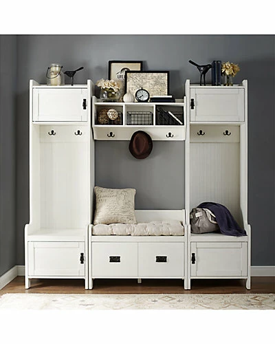 - Design details: Keep your entryway clutter-free and organized with the Freemont Entryway Kit. This four-piece kit includes two towers, a bench, and a shelf. The towers offer multiple coat hooks, an easy to slide storage cubby, an elevated swing door storage space, and top shelf storage. The shelf has three coat hooks and three galvanized wire baskets. The bench adds extra seating, as well as, two easily accessible cubbies accented with antique hardware. This kit can be easily paired with the rest of the Freemont Collection; Kit Includes: Two Towers, Bench, Shelf; Antique Finish; Easy To Mount Design; Three Well Spaced Coat Hooks; Mounting Hardware Included; Cushion Included; Two Easy Glide Storage Cubbies; Antique Hardware; Light Assembly Required