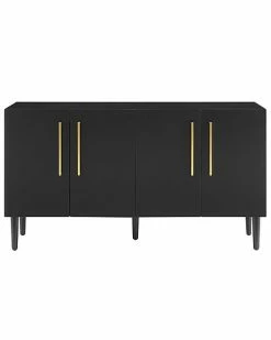 - Bring mid-century vibes to your dining room or kitchen with the Everett Sideboard. Perfect for tucking away dishes and barware, this sideboard provides two large cabinets with adjustable shelving. Perched atop tapered legs and showcasing classic bar hardware, the Everett Sideboard will add polish and style to any room. Mid-century modern design.Matte black finish.Genuine metal hardware in a brushed gold finish.Two large cabinets with double doors and magnetic closures.Adjustable and removable shelf inside cabinet with a 15lb weight limit.Tapered legs.Adjustable levelers on legs.Pairs well with modern, farmhouse, and rustic decor.Sideboard top weight limit is 100lbs………..