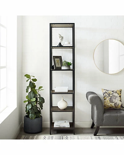 - Whether displaying treasured keepsakes or storing everyday items, the industrial edge of the Jacobsen Narrow Etagere fits the bill. With stunning simplicity, the etagere features a combination of steel and the look of rustic wood. The five stationary shelves offer sturdy storage space, yet maintain a sleek and streamlined silhouette.