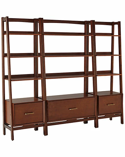 - Design details: Taking cues from mid-century modern design, the Landon 3pc Etagere Set features a sturdy wood frame and a total of nine open shelves. Three spacious office style drawers are seated on full extension glides giving access to every corner and making office organization a breeze. Ideal for books and other decor, the Landon 3 Piece Etagere Set delivers a classic storage solution with modern flair.