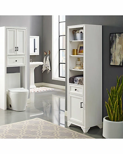 - Design details: The Tara linen cabinet offers much-needed organization to narrow bathrooms, hallways, kitchens, and beyond. This linen cabinet is modeled in a cottage style with its vintage detailing, distressed gray finish and antique bronze hardware. With its tall silhouette and spacious shelf space, this valet offers abundant storage while taking up minimal floor space. Store, or display. The choice is yours and the possibilities are endless; Classic design complements a number of styles- Farmhouse, Cottage, Traditional, or Modern; Constructed of Pine With Birch Veneers; Antique bronze hardware; Full extension drawer; Spacious shelves and cabinet; Light Assembly Required