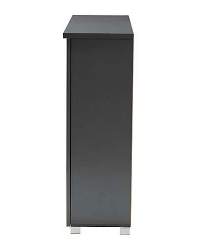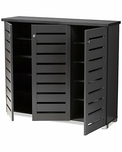 - Design details: Shoe organization is made easy with the Adalwin cabinet. Featuring a stylish contemporary design and dark grey finish, the Adalwin is easy to coordinate with any style of decor. Three doors conceal eight fixed shelves with storage space for up to 20 pairs of shoes. The doors feature open slats to enable air circulation and prevent mold growth on your shoes. The Adalwin cabinet is made in Malaysia and requires assembly.