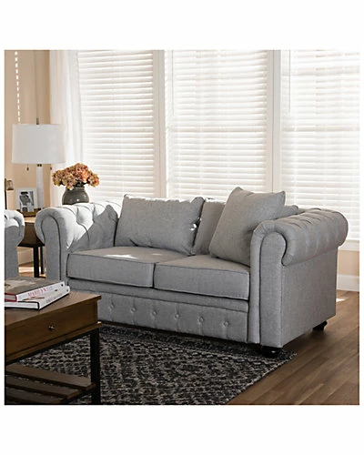 - Design details: rubber wood and foam construction; rolled arms bun feet button tufting comes with one matching pillow