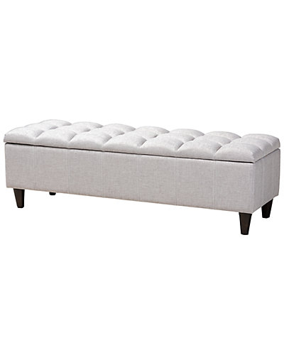 - Design details: Add style and utility to any space with the Brette storage ottoman. This chic ottoman features a streamlined design that makes it easy to coordinate with a wide range of decor styles. Upholstered in a soft, durable polyester fabric, the lid is foam-padded and biscuit tufted to provide the utmost sitting comfort. The ottoman features a storage compartment under the lid, providing space to store extra blankets and pillows. Tapered, dark brown-finished wood legs add mid-century modern appeal. Use this versatile piece in the entryway, living room, or bedroom. The Brette storage ottoman is made in Malaysia