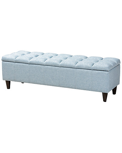 - Design details: Add style and utility to any space with the Brette storage ottoman. This chic ottoman features a streamlined design that makes it easy to coordinate with a wide range of decor styles. Upholstered in a soft, durable polyester fabric, the lid is foam-padded and biscuit tufted to provide the utmost sitting comfort. The ottoman features a storage compartment under the lid, providing space to store extra blankets and pillows. Tapered, dark brown-finished wood legs add mid-century modern appeal. Use this versatile piece in the entryway, living room, or bedroom. The Brette storage ottoman is made in Malaysia