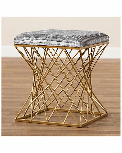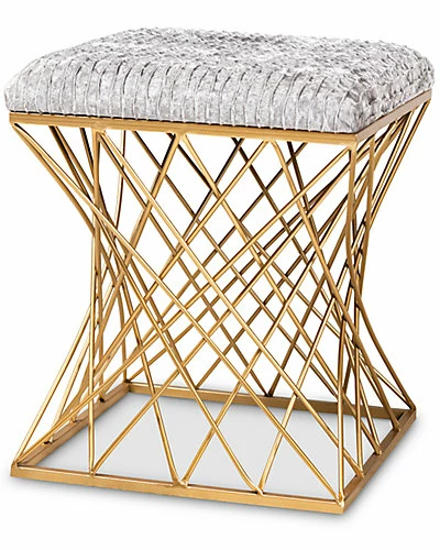 - Design details: Add a hint of glamour to your space with the Fiore ottoman. This metal ottoman features a striking gold-toned geometric base that displays exquisite craftsmanship. The seat is upholstered in a grey crushed velvet fabric and features ripple-effect piping for a touch of texture and visual interest. Use this chic ottoman as a vanity seat or as a footstool. The Fiore ottoman is made in China and will arrive fully assembled.