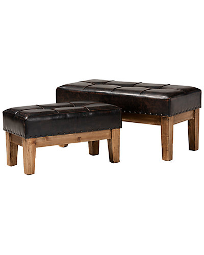 - Design details: Give your space a warm, rustic aura with the Lenza ottoman set. Featuring one large ottoman and one small ottoman, this MDF wood set showcases a natural finish that displays the stunning grain patterns in the wood. Each piece is upholstered in distressed dark brown faux leather or a luxurious feel. Biscuit tufting and antique bronze nailheads complete the look. Use this versatile piece as a footstool or as extra seating for guests. The Lenza ottoman set is made in China and will arrive fully assembled.