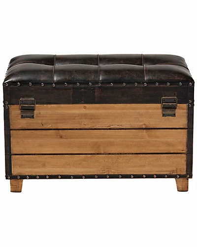 - Design details: Rustic flair and versatility make the Marelli storage ottoman set a cool addition to any space. Featuring one large ottoman and one small ottoman, each piece in this set is constructed from vertical, natural finished wood panels that evoke a charming cabin feel. The top of each ottoman, upholstered in distressed dark brown faux leather, can be flipped up to reveal a spacious inner storage compartment. Combining elements of both rustic and refined style, the Marelli pieces display biscuit tufting on the seat, as well as antique bronze nailhead trim. Tapered legs complete the look. The Marelli storage ottoman set is made in China and will arrive fully assembled.