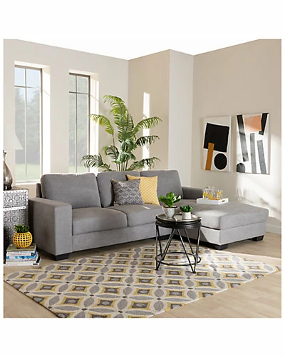 - Design details: With its modern silhouette and plush cushions, the Nevin sofa has all the elements to anchor your living room in style and comfort. Constructed from wood, the Nevin is upholstered in a chic grey polyester fabric. Wide, supple cushions provide ample comfort and relaxation during movie nights. Sleek track arms lend a tailored look, while black tapered feet provide elevation for easy dusting. The Nevin sofa is made in Malaysia and requires assembly. Overall