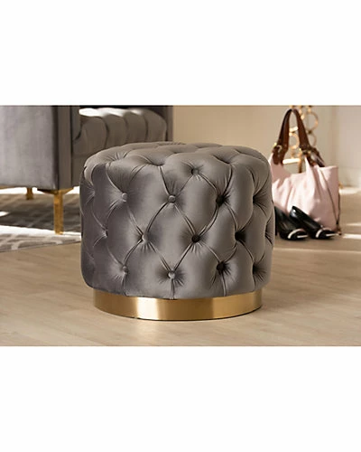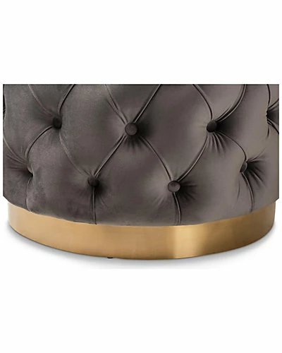 - Design details: Modern glamour meets comfort in the Valeria ottoman. Constructed from sturdy plywood and stainless steel, the Valeria is padded with foam and upholstered in a rich velvet fabric that is soft to the touch. A striking brushed-gold finish on the base adds a touch of luxury, while all-over button tufting highlights the subtle sheen of the velvet. Use this versatile piece as a footstool or as extra seating for guests. The Valeria ottoman is made in China and will arrive fully assembled.