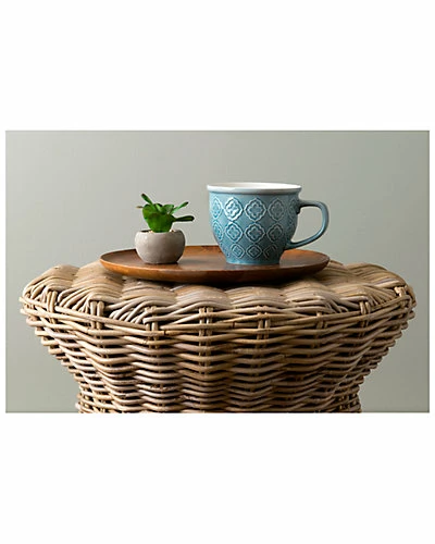 - Design details: Woven together with smooth natural rattan fiber, this textured accent table has a lovely drum shape.