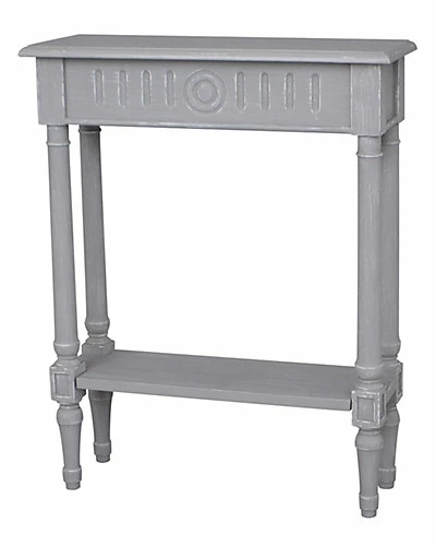 - Design details: Ideal for any space that needs an additional surface, the Ava Console table is here! Great for an entryway in a small home or apartment, simple t.v. stand, or even vanity in the bedroom. Each piece is hand crafted and painted grey, with elegant carvings showing through!