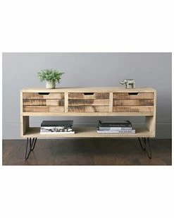- Modern mid-century details and rustic finishes combine in this playful accent cabinet. Striking a rounded rectangular silhouette, it’s made from solid mango wood with a neutral brown finish that shows off the wood’s grain color variation. Tapered, splayed legs add character down below while the vertical grooves add that must-have texture and visual intrigue. Inside the two doors, this accent cabinet has two storage shelves for added organization.