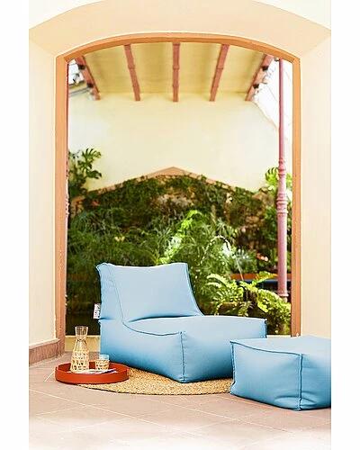 - Spice up your outdoor or indoor space with this fun and trendy Chamonix Outdoor/Indoor Ottoman from Gouchee Home. This ottoman is perfect for the indoors and outdoors. It is made from Olefin waterproof fabric and is fade resistant to 1000 hours colourfastness. Whether you are looking for an extra seat or need to rest your feet, this pouf fits the home dZcor bill. Designed with the Gouchee Home integrated chute-filling system for hassle-free bead filling and removal, this lightweight, portable lounger is available in a stylish selection of 10 on-trend colours. Pair it with the Alpine Outdoor/Indoor Bean Bag Lounger Chair to transform your experience into one of laid-back luxury.