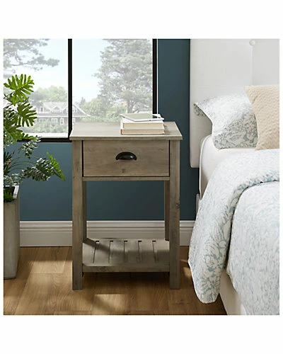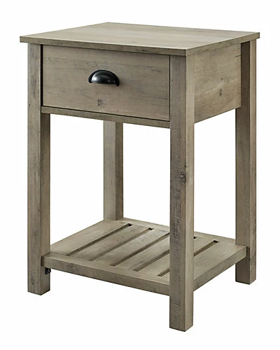 - Design details: Whether youre looking to keep things quaint and country or simply organize your home this one-drawer farmhouse side table will satisfy your design desires. It has a single top drawer with a half-moon handle, that features telescoping metal drawer glides for a smooth push and pull track for convenient closed storage. The lower slat style shelf creates open storage while infusing farmhouse style. These accent tables can be used as living room end tables or bedroom nightstands, plus, you can find the complementary entry table to make a complete set in your home.