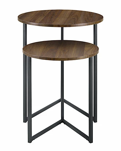 - Design details: Point your style in the right direction with these V-leg nesting side tables. The dynamic metal legs are made of powder coated metal while the table top is constructed out of warp-resistant MDF and finished with a high-quality laminate. Industrial design gets a geometric update with these two-tone, angled accent tables. Flexibly use these nesting tables together or separately.