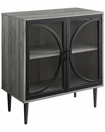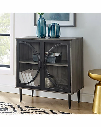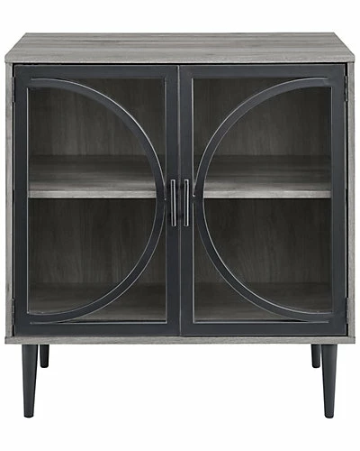 - Design details: With distinct decorative door fronts of tempered glass and metal, this multifunctional accent console gives both storage space and a stylish addition to any room. Set near a wall in your living room as an accent console, in your kitchen as a storage cabinet for your fine china, or as a bar cabinet with your drinks and glassware, as the shelf is adjustable to fit your items. Held up with mid century modern tapered legs, this piece incorporates both an industrial chic look and transitional style for an on-trend element in your home.