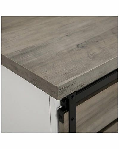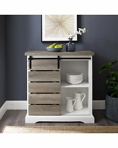 - Design details: Compliments will come your way after you add this stylish TV stand into your home. Drawing attention with its two-tone finish, which offers a fresh and modern new take to a rustic farmhouse appeal. Featuring a sliding slatted door front to glide smoothly over either side, keeping your items hidden on one side and open on the other. This wood TV stand provides adjustable shelving to organize your media, books, electronics, decor, and more the way you like it. Create that charming farmhouse feel by incorporating it in your living room as an entertainment center, bedroom as a storage cabinet, or kitchen as a buffet. Made of high-grade MDF, durable laminate, and metal.