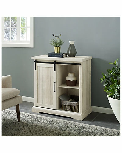- Design details: Highlight your living space with this 32-inch modern farmhouse buffet. Whether you set it in your living room as an entertainment center, bedroom as a storage cabinet, kitchen as a buffet, or entryway as an entryway table, it will blend into any setting. Providing additional storage space in your home for your electronics, clothing, accessories, linens, or decor. As a TV stand, it can support up to a 34-inch TV. Made of high-grade MDF, durable laminate, and metal, featuring a sliding door front to close off either side of the shelving for open and closed storage.