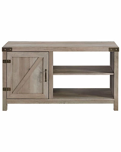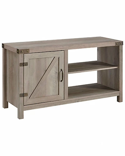 - Design details: Our 44-inch rustic farmhouse barn door console makes for a perfectly practical console in your home. Made up of durable manufactured wood and metal hardware on the top front corners, door hinges, and door handle, to give the ultimate traditional and rustic feel to your living room. The visible and inside shelving are adjustable for open and hidden storage. Place your TV on top to use as a media stand or take your picture frames, ceramic vessels, and a stack of books to decorate the shelves and table top.