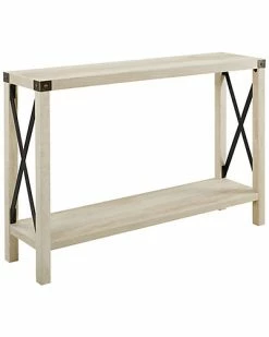 - Design details: With this entry table, youll have a stylish entryway in no time. The urban industrial and charming, farmhouse style create a warm and inviting feel to your home, youll enjoy having. With metal accents on the corners and x-shaped sides for an intriguing design. A lower shelving made from durable laminate, provides a surface for your shoes when you get home or to decorate.