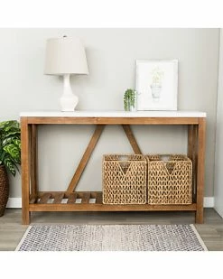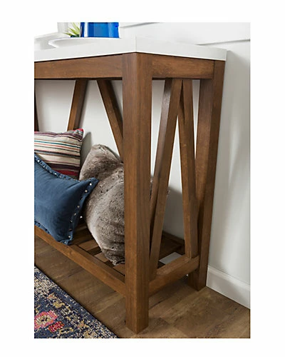- Design details: Rustic charm can be yours when you add this 52 inch A-Frame console table to your living room, entryway, or hallway. The marble and walnut two-tone finish bring the perfect touch of aesthetic appeal while the spacious table top and open slatted bottom shelf provide the perfect place to display and store your favorite accessories, photos, and collectibles. Constructed of high-grade MDF and durable laminate, this piece will be the simple answer for all of your decorating needs.