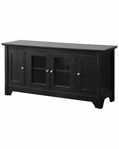 - Design details: Built to support TVs up to 55 inches, this console is the perfect solution for your home entertainment. This entertainment center and TV stand features four media cabinets with adjustable shelving and a cable management system to fit your components more easily. Center cabinet doors have glass panes to make this storage console look even more classy. Crafted from high-grade MDF with wood veneer finish to fit your home decor for a transitional style youll admire.