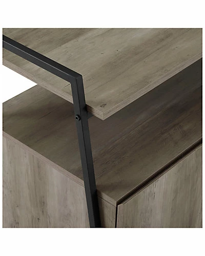 - Design details: Angled metal sides and a wood facade emanate an urban industrial feel while open and closed storage, beveled door fronts and soft close hinges maintain the sleek and clean vibes of the piece. Interior adjustable shelves and cord management allow this media stand to suit your entertainment needs with ease, whether youre housing vinyl records or gaming consoles. Altogether the outstanding performance and dangerous good looks of this mixed material TV stand will play the starring role in your entertainment space.