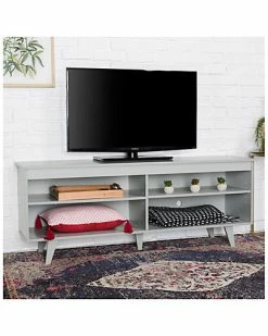 - Design details: Simplicity meets mid centurystyle in our mid century modern TV stand. Combining a modern aesthetic with convenient storage, minimalist and modernist are not the only ones to fall in love with this entertainment center, as it gives you a simple, clean look to your living room youll enjoy having in your home. Built with sturdy high-grade MDF and featuring a stylish, painted finish with angled legs, this media console can accommodate most TVs up to 60 inches.
