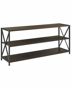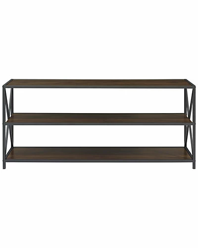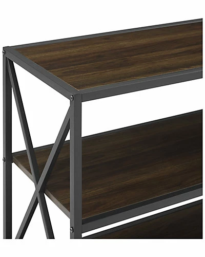- Design details: Showcase your books, magazines, media, and more with this beautiful bookcase. Durably constructed of high-grade MDF and powder coated metal, together create a sturdy, yet stylish shelving unit. The combination of metal and wood with x-shaped sides give a rustic aesthetic, perfect for your entryway, bedroom, or living room. This bookshelf can make an industrial style statement, while also providing you storage space. Decorate with your book collection, plants, and artistic elements to match your living space.